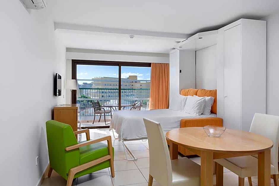 Two outdoor pools, including a dedicated kids’ pool, invite sun-drenched days by the sea, while beach access comes with free umbrellas and loungers for easy shoreline lounging. An on-site restaurant and bar serve up Mediterranean, Spanish, international, and European flavors, with a terrace and a balcony to soak up sea breezes between bites.